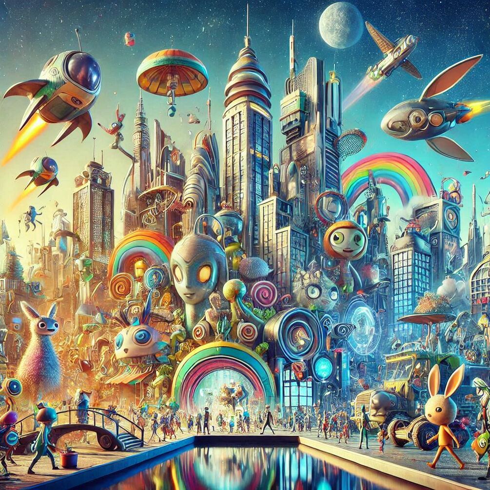 Cosmic Cartoons: A Whimsical Adventure in a Futuristic Metropolis 🚀🤖