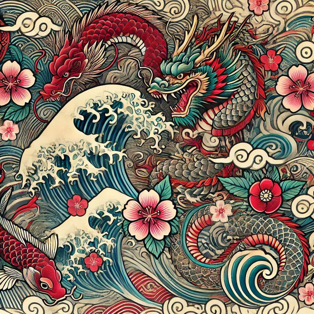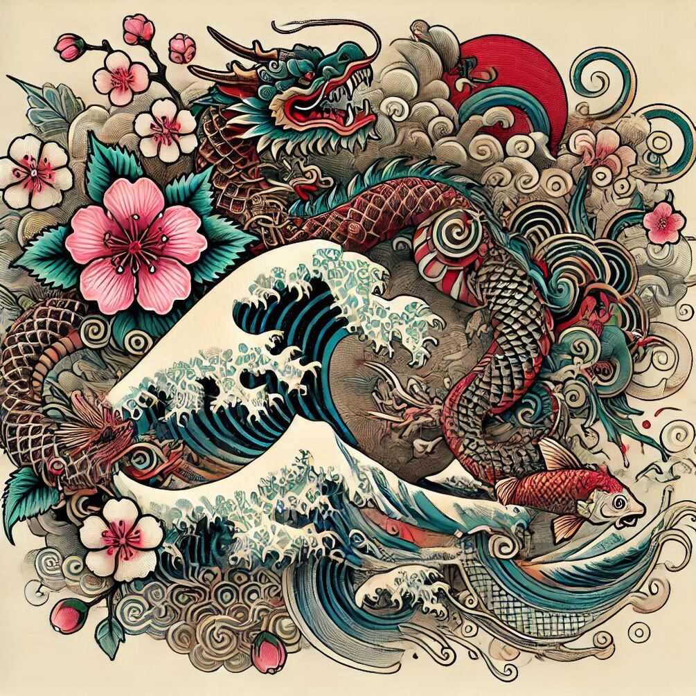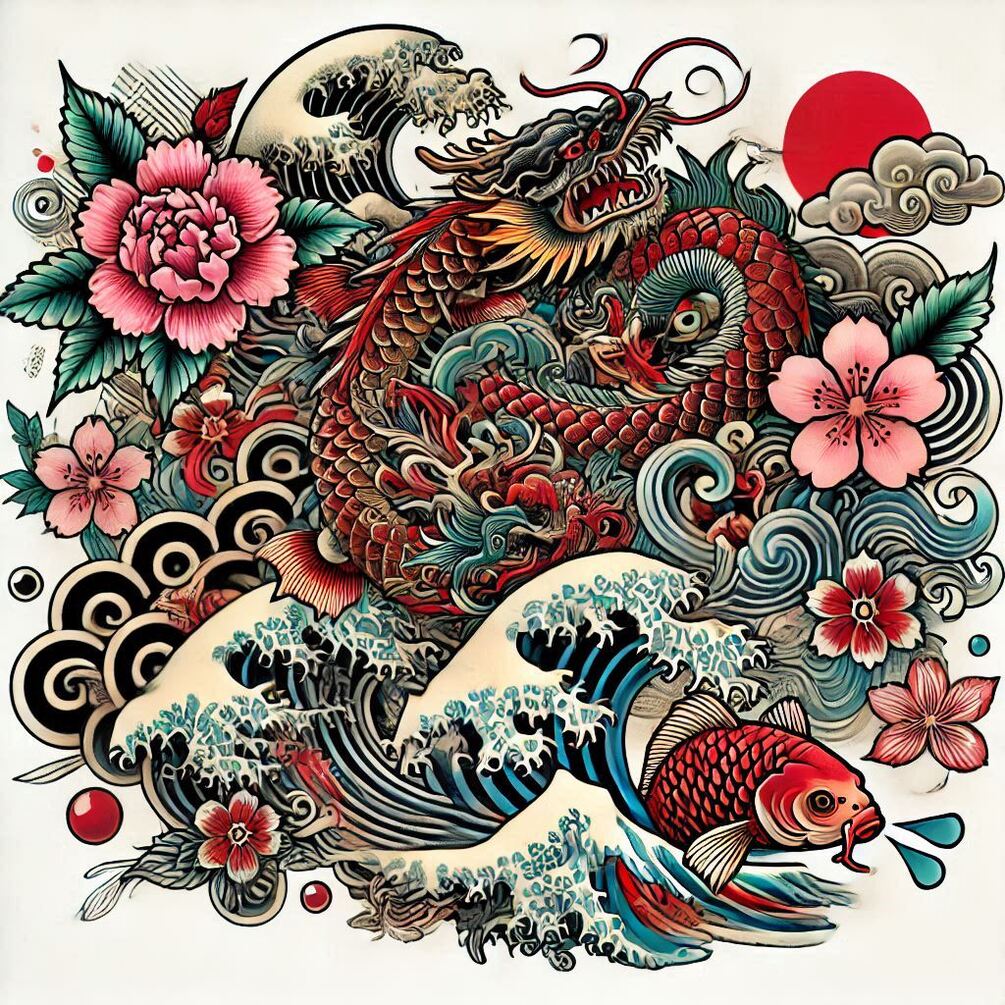 Dive into the intricate beauty and cultural significance of Japanese tattoo art with this mesmerizing image! Incorporating traditional motifs like koi fish, cherry blossoms, dragons, and waves, this piece blends deep blues, vibrant reds, and bold black outlines to reflect the rich history and symbolism of Japanese tattoo art. With a sense of depth and movement, this composition invites viewers to explore hidden meanings and interpret its intricate details. Explore the interplay between negative space and modern elements, pushing the boundaries of creativity to create a truly unique and thought-provoking image. Let this artwork spark conversations and connections, resonating on a deeper level with its captivating design. π¨π«